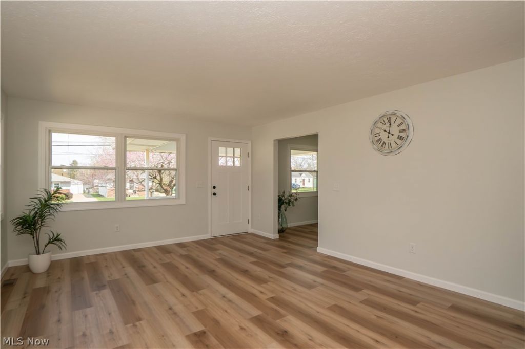 Completely updated from the studs in, this inviting Akron ranch offers the perfect blend of fresh finishes and functional one-floor living. Step onto the covered front porch and into a bright, refreshed interior featuring new LVT flooring throughout the main living areas. The spacious living room flows into the eat-in kitchen, where stainless steel appliances, butcher block countertops, and plenty of room for dining create a warm and practical gathering space. All three main-level bedrooms are comfortably sized, and the full bath has been beautifully remodeled with a tile-surround tub/shower combination. The lower level adds even more flexibility with plenty of additional space that could easily be finished into a larger rec room or entertaining area, finished bonus room, half bath, and laundry hook ups. Outside, enjoy an expansive driveway patio area with a detached two-car garage. Conveniently located and move-in ready, this home offers updated style and everyday comfort in one neat package!
